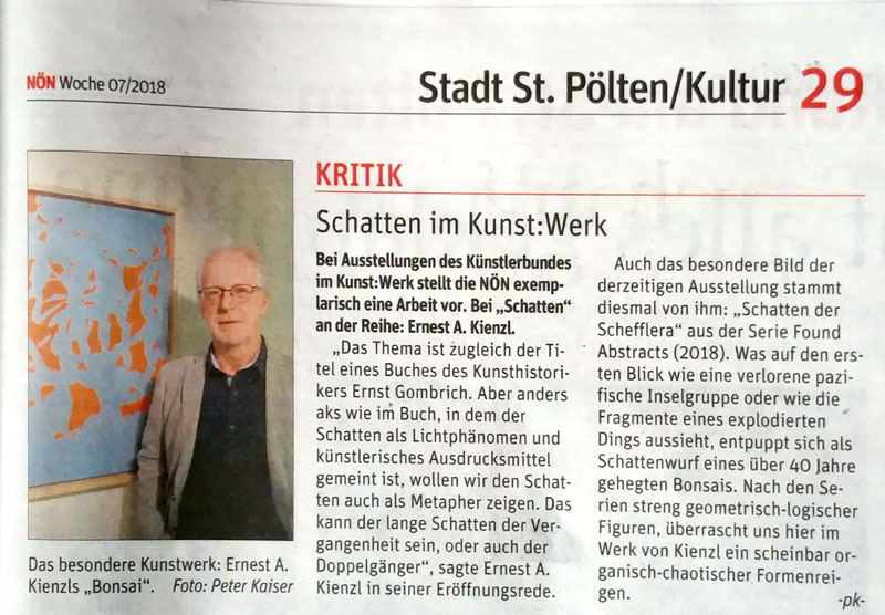 Diese Woche in der NÖN ein lesenswerter Artikel von Peter Kaiser über die Ausstellung Schatten im KUNST:WERK