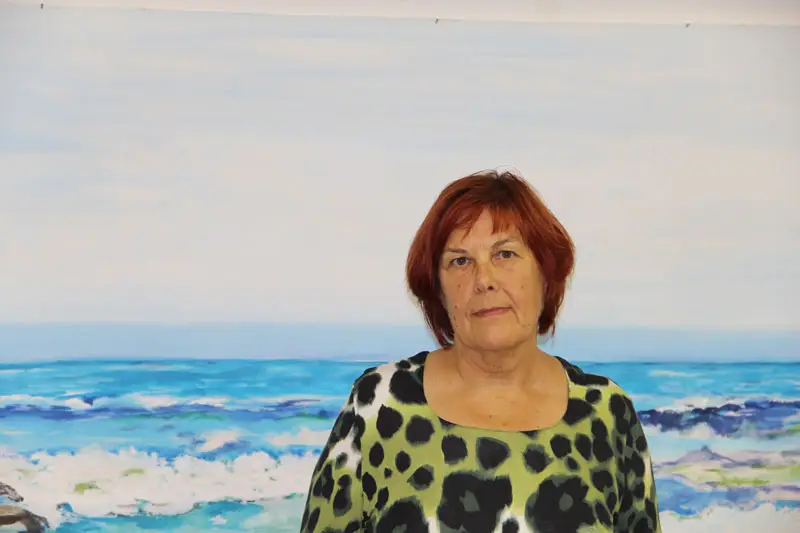 Elisabeth Kallinger vor Arbeit "Am Strand"