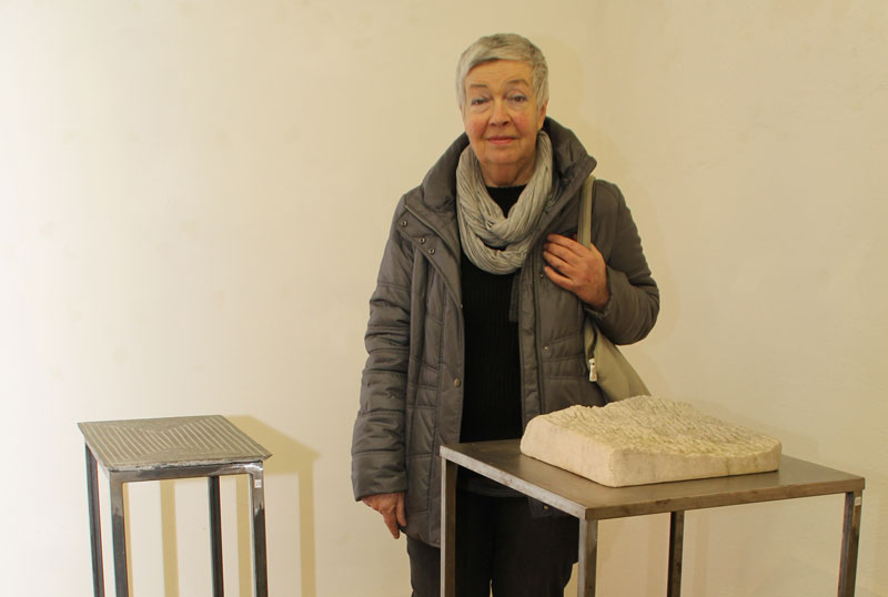 Heliane Wiesauer-Reiterer – sie präsentiert in der Ausstellung „taktil“ Steinarbeiten – steht heute, Sonntag, 26. 2. 2016,  von 10.00 bis 12.30 Uhr für Gespräche mit den Besucherinnen und Besuchern zur Verfügung.