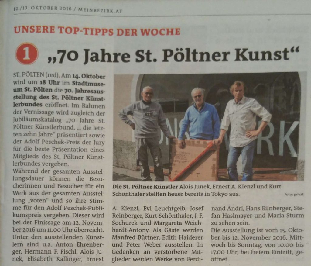 Heute Eröffnung der 70. Jahresausstellung des St. Pöltner Künstlerbundes